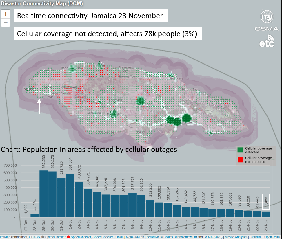 The Emergency Telecommunications Sector (ETS) is supporting the Government-led response in Jamaica, coordinated by the Office of Disaster Preparedness and Emergency Management (ODPEM) with support from the Caribbean Disaster Emergency Management Agency (CDEMA). Relief efforts are focused on the hardest-hit Parishes, where telecommunications and power services remain severely disrupted. Mobile network operators continue to report outages across multiple locations, underscoring the urgent need for coordinated connectivity support.