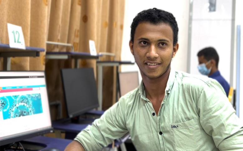 Sahar Salem is a medical student in Aden University. She is one of just 6–7 percent of university-age women to enrol in higher education in Yemen. “This support that we’ve received, it has made a distinct difference in my journey here at the university. Online learning has created new opportunities to attend remote seminars, discussions, and activities with other universities,” she says.